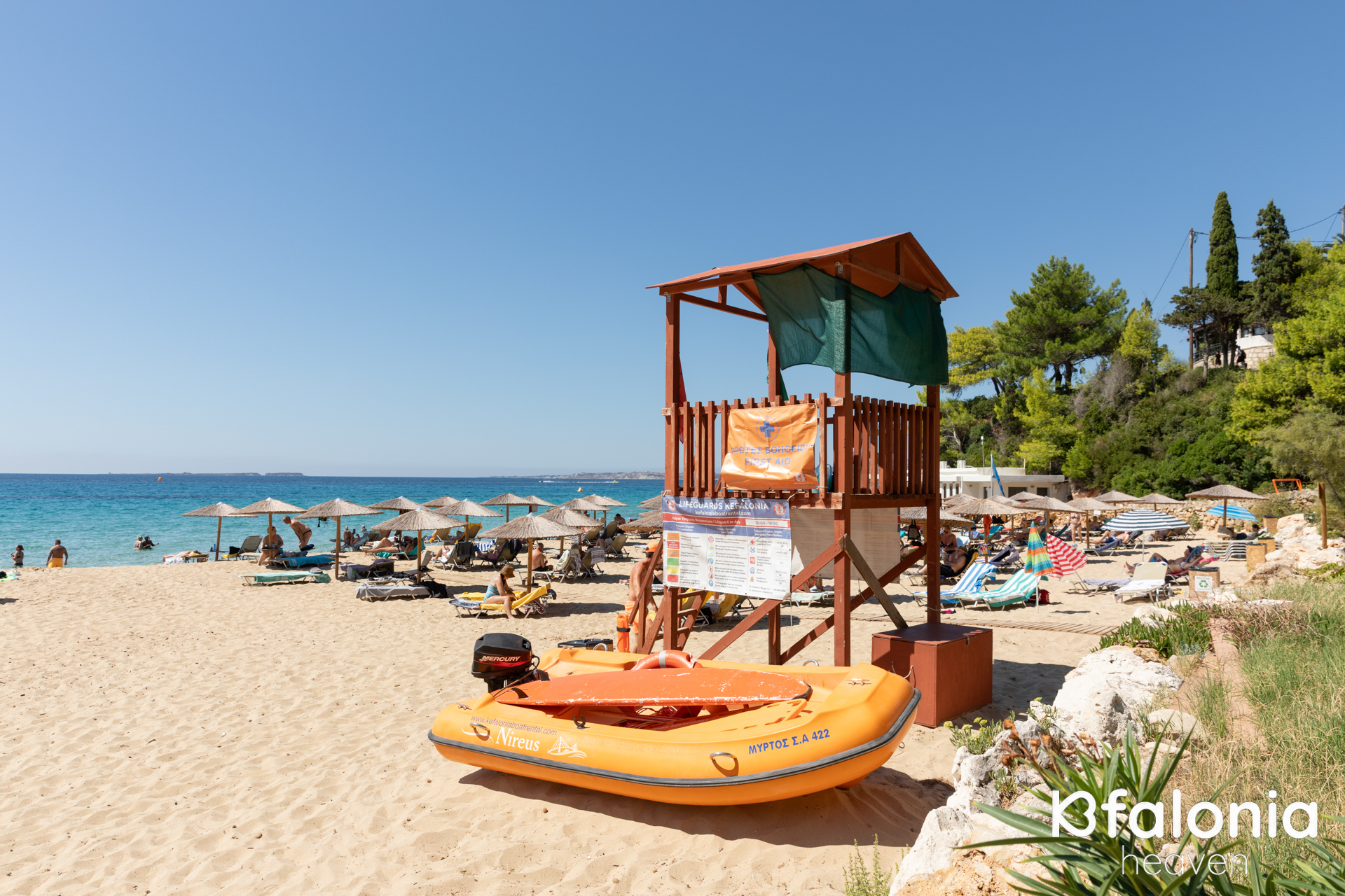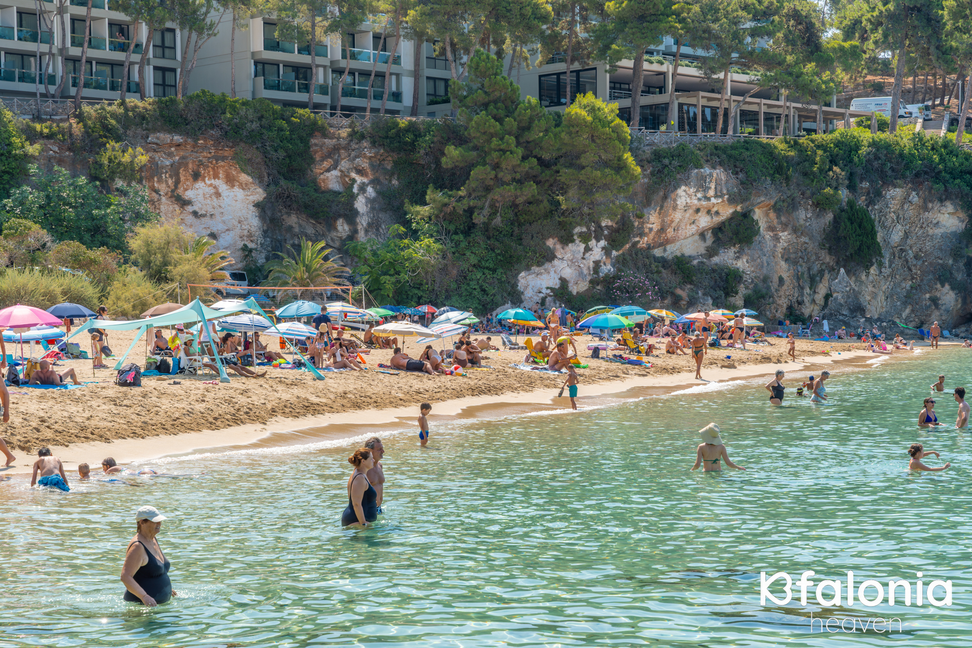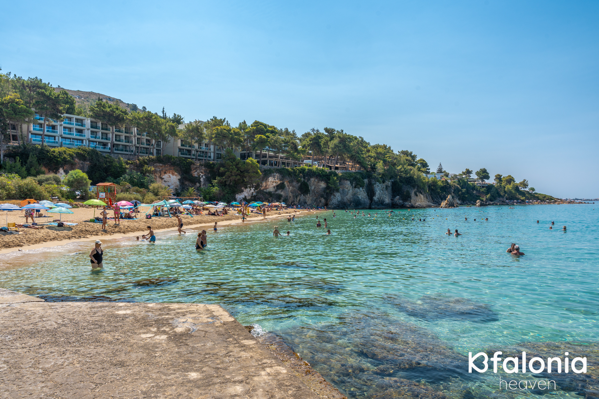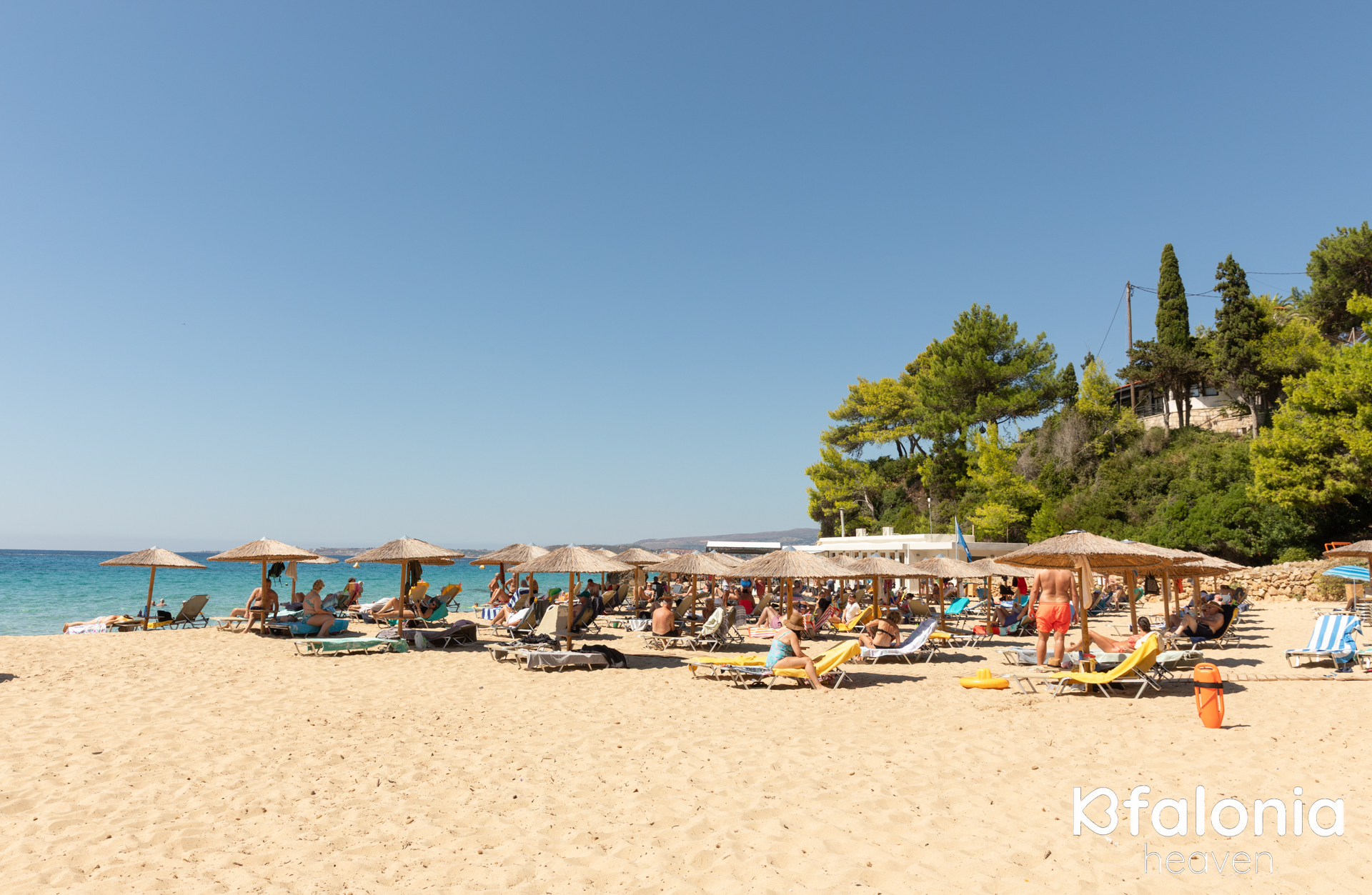 They are awarded a Blue Flag every year for their cleanliness and they are known for the yellow sand they have along their entire length. Most locals and visitors choose these beaches not only because they are close to the capital, Argostoli, in the area of Lassi, with many tourists and on the road to the airport, but because these lovely beaches combine everything one could desire during their holidays.